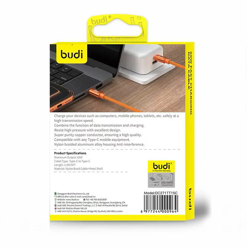 Budi 1.5m 65W Type-C to C Cable DC271TT15C