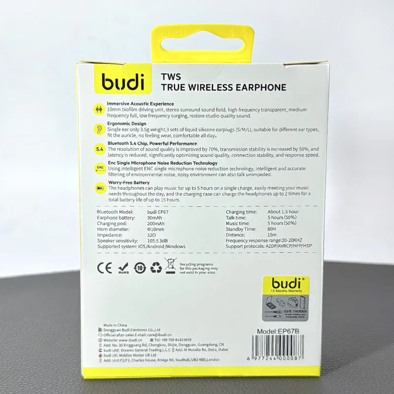 Budi TWS bluetooth Bass earphone EP67B